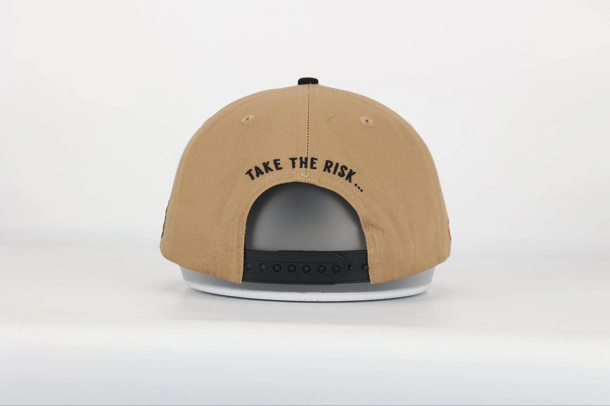 En la parte trasera, un audaz recordatorio: "Take the Risk…" ("Toma el Riesgo…"), un llamado a la acción que refleja la filosofía de nuestra marca e inspira a enfrentar los desafíos sin miedo.